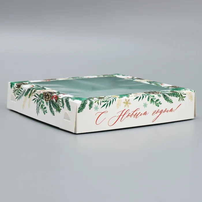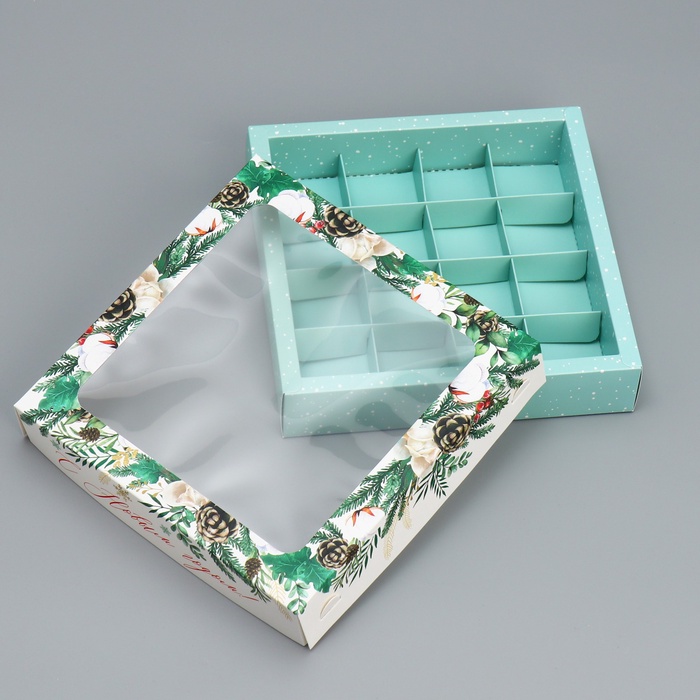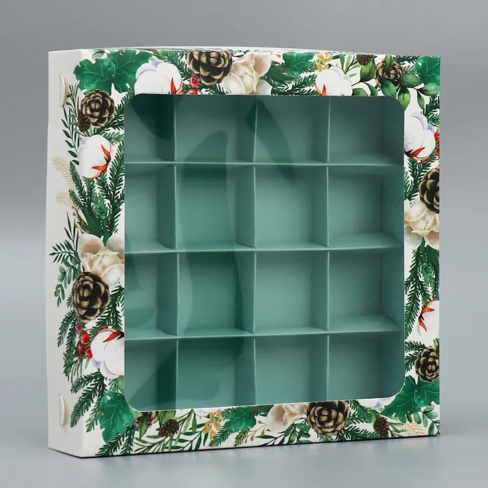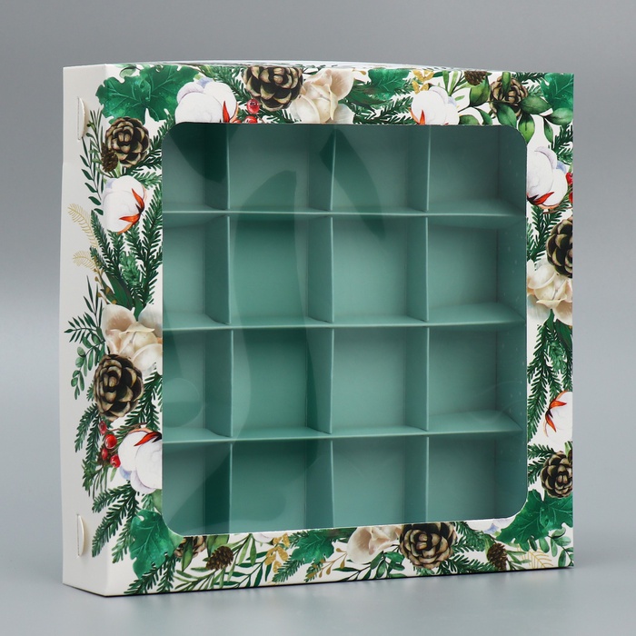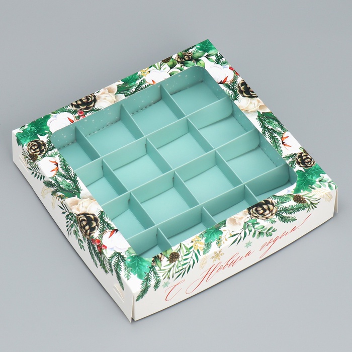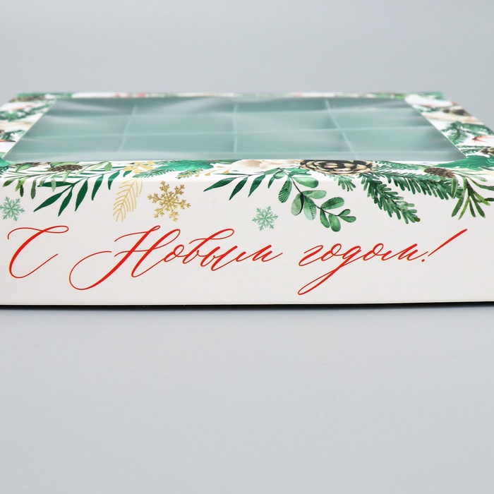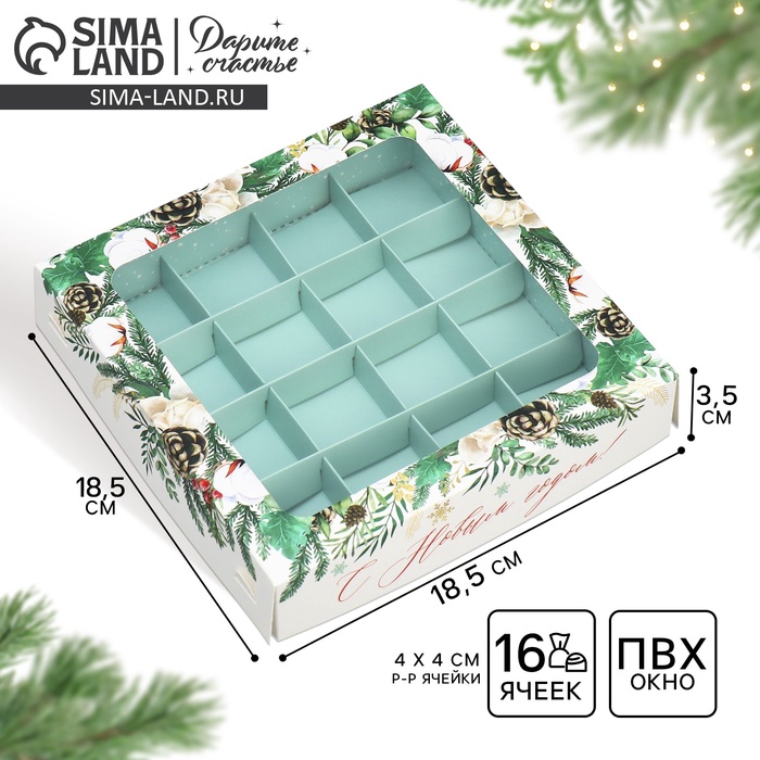 Коробка под 16 конфет «С Новым годом», ботаника, 18.5 х 18.5 х 3.5 см — Характеристики