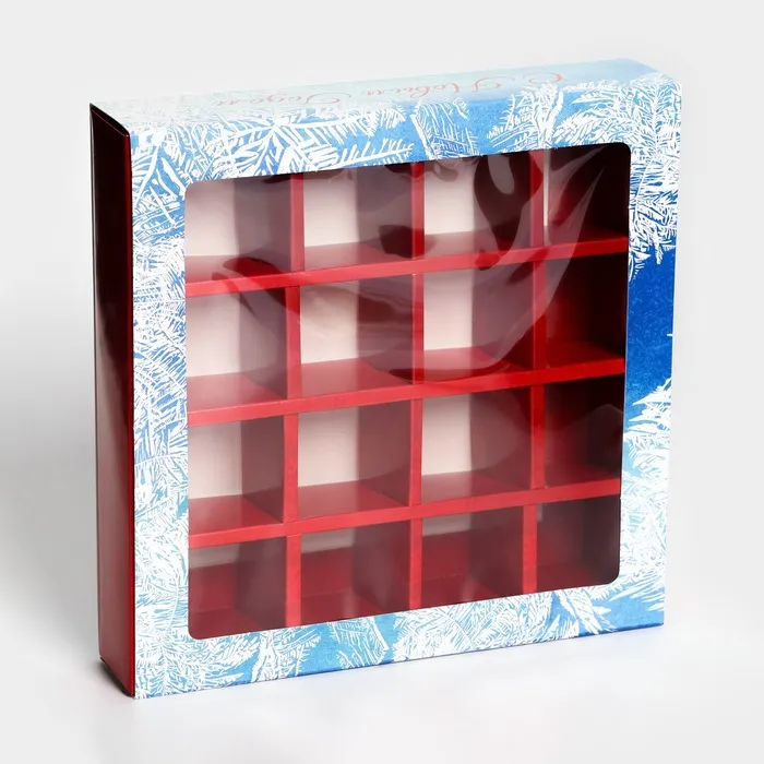 Коробка под 16 конфет "Новогодняя" размером 17,7х17,7х3,8 см - это прекрасный выбор для упаковки сладостей к празднику. Она выполнена в ярких новогодних цветах, что создает атмосферу праздника и волшебства.