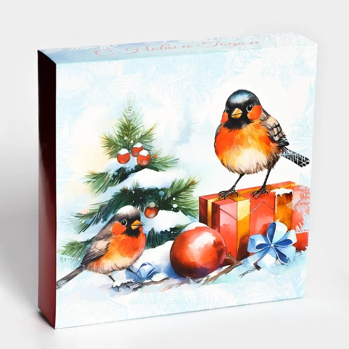 Коробка под 16 конфет «Снегири», 17.7×17.7×3.8 см — Характеристики