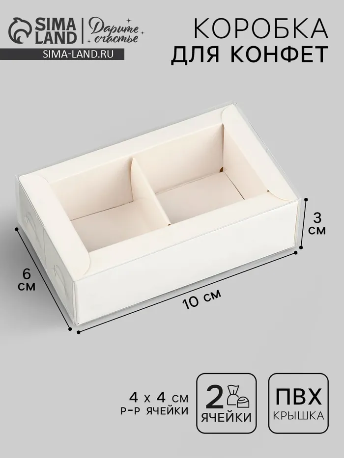 Коробка под 2 конфеты с ячейками «Белая», 10 х 6 х 3 см — Характеристики