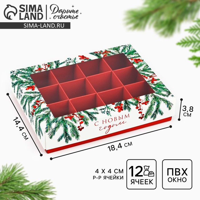 Коробка под 3 конфеты с ячейками «С Новым годом!», 14.5 х 6 х 3 см — Характеристики
