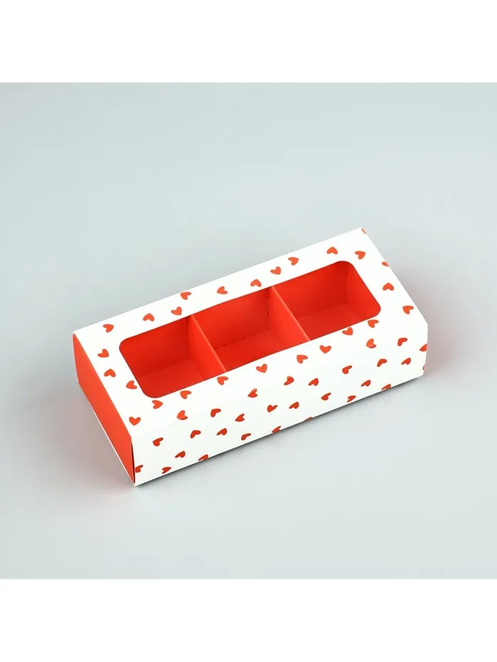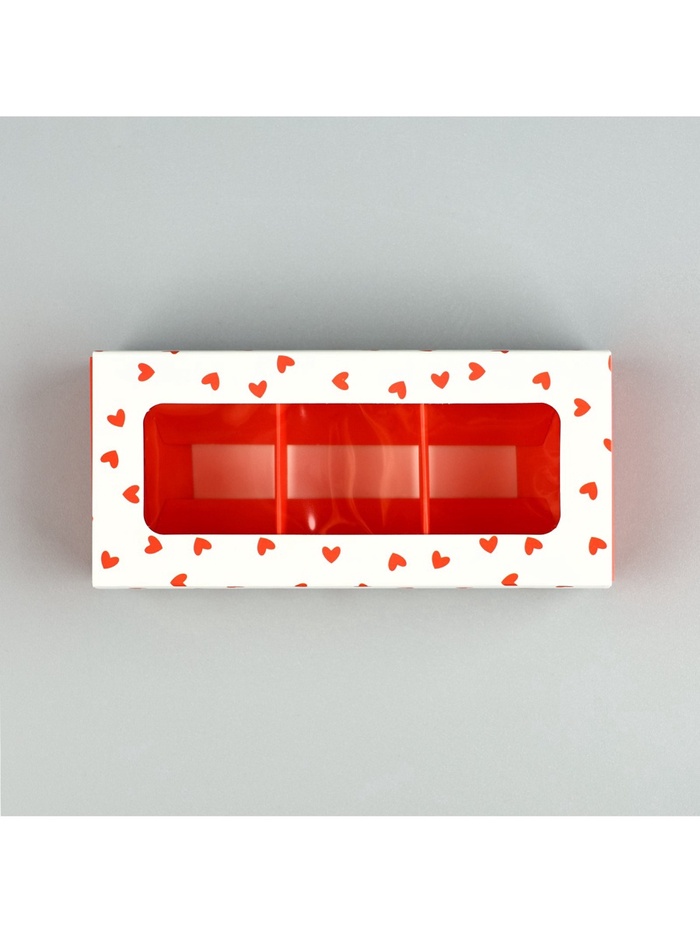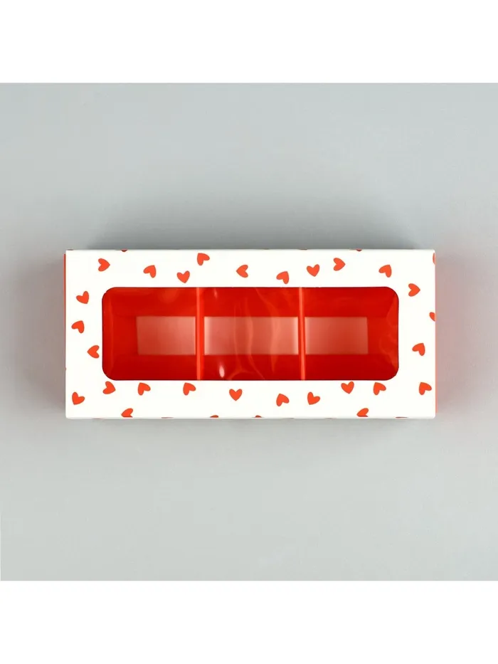 Коробка под 3 конфеты с ячейками «Сердечки», 13 х 3 х 5.5 см