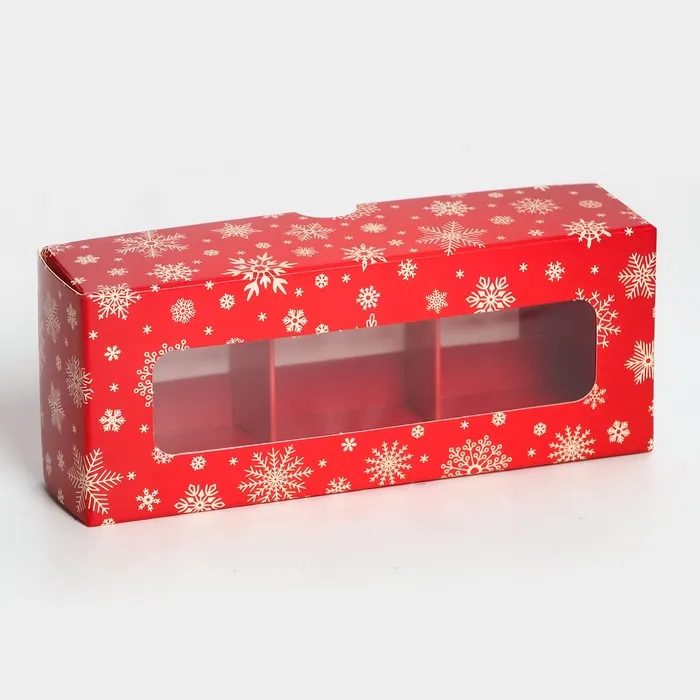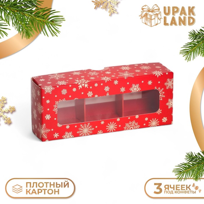 Коробка под 3 конфеты "Новогодняя" размером 13х5х3,3 см - это прекрасный выбор для упаковки сладостей к празднику. Она выполнена в ярких новогодних цветах, что создает атмосферу праздника и волшебства.