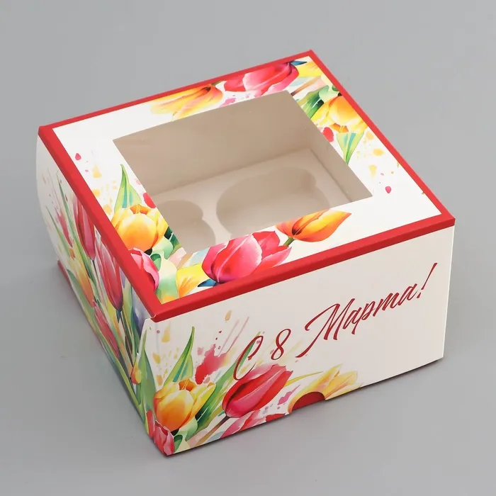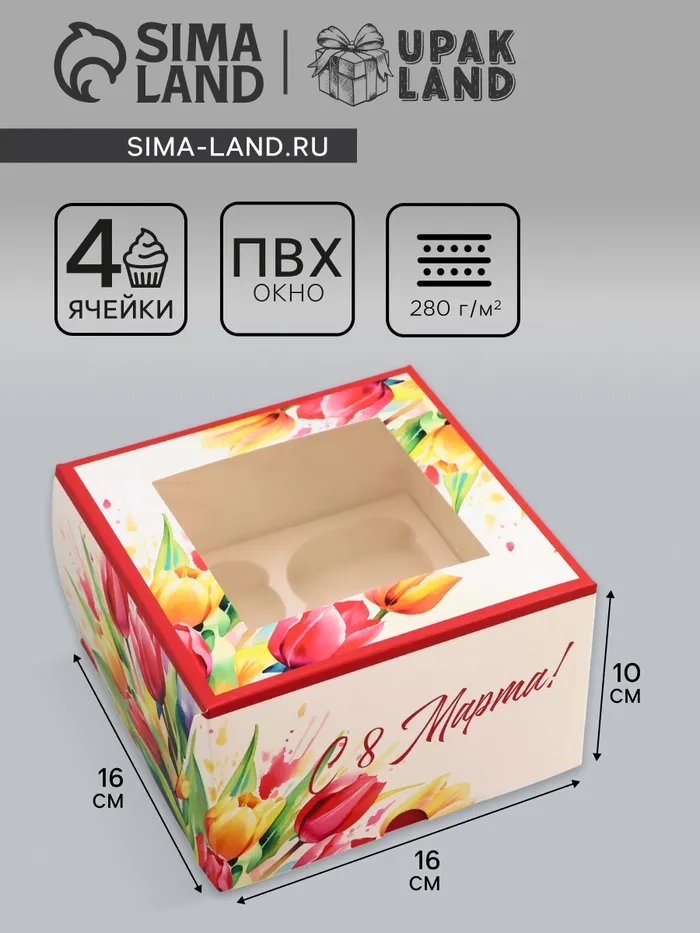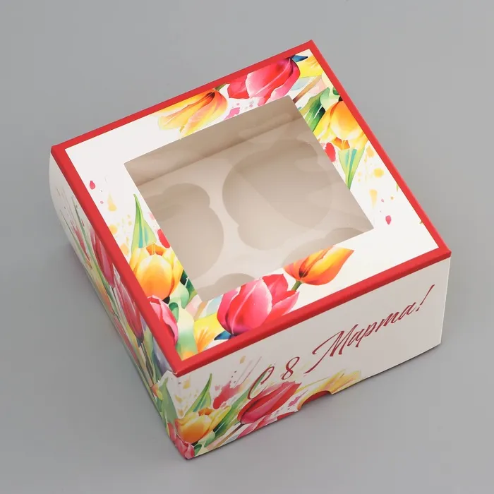 Коробка под 4 капкейка с окном, «Самой прекрасной», 16×16×10 см — Характеристики