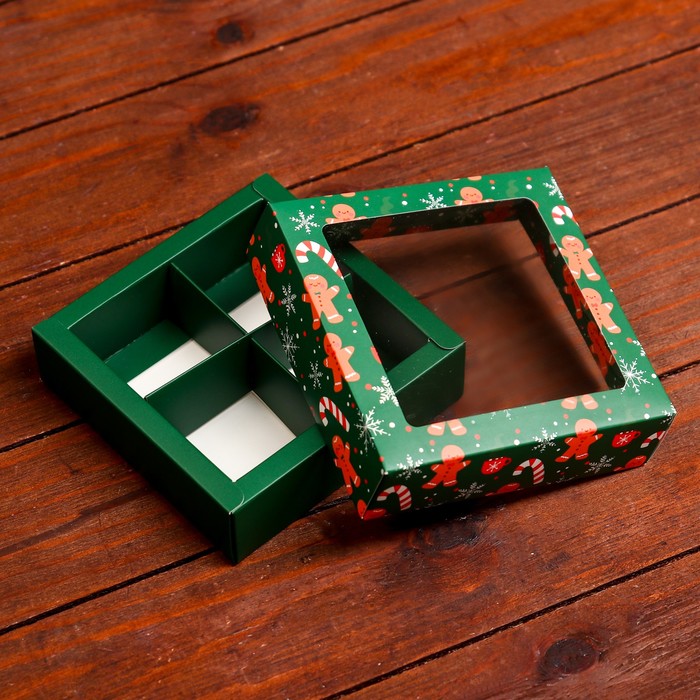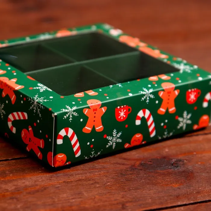 Коробка под 4 конфеты, 12.6×12.6×3.5 «Имбирный пряник» — Характеристики