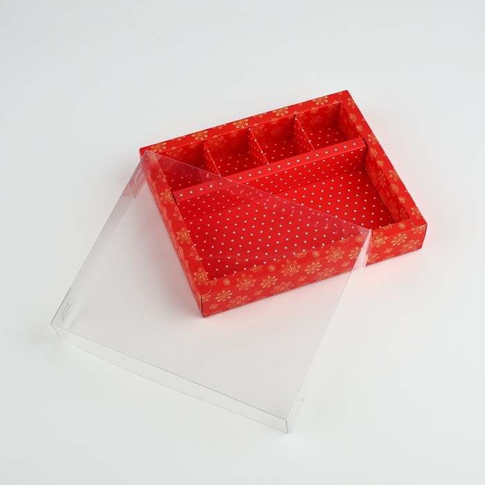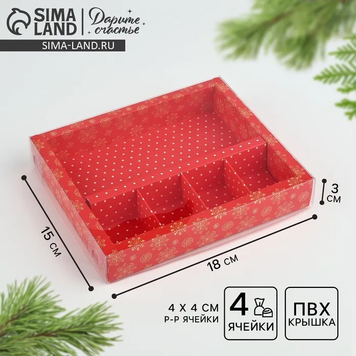 Коробка под 4 конфеты и шоколад с ячейками «Снежинки» 18 х 15 х 3 см — Характеристики