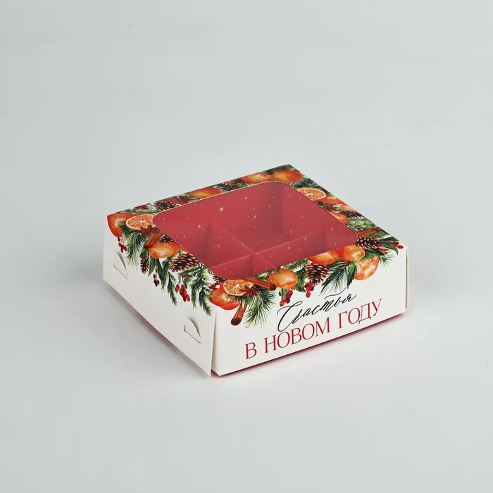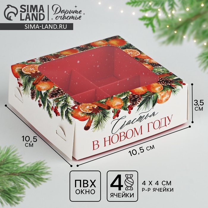 Коробка под 4 конфеты новогодняя «Зимняя ботаника», 10.5 х 10.5 х 3.5 см — Характеристики