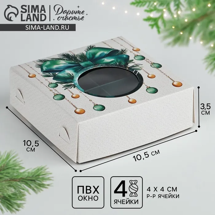 Коробка под 4 конфеты «Новогодние игрушки», 10.5 х 10.5 х 3.5 см — Характеристики
