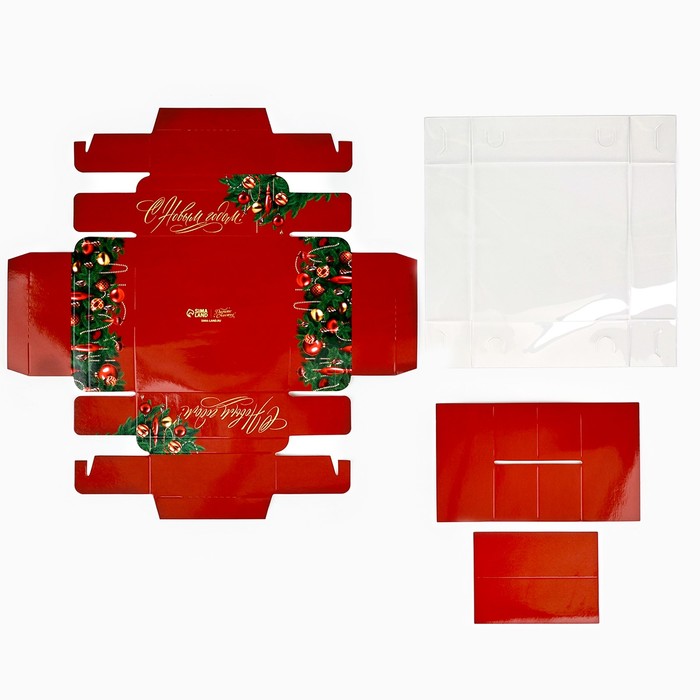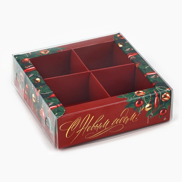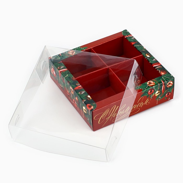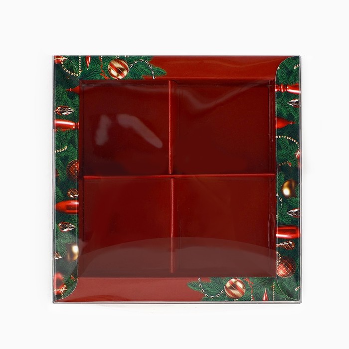 Коробка под 4 конфеты с ячейками «Новогодние украшения», 10 х 10 х 3 см — Характеристики