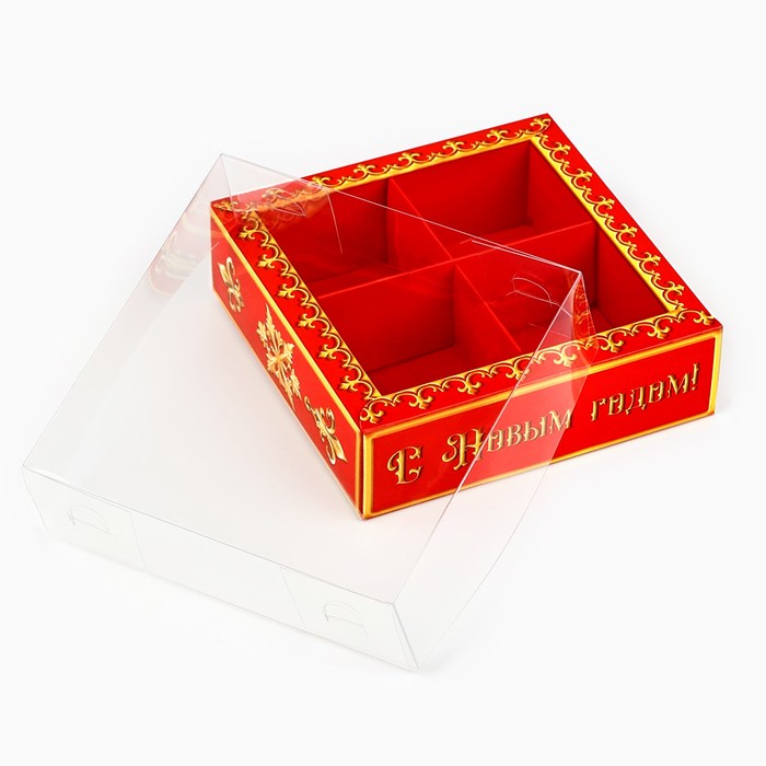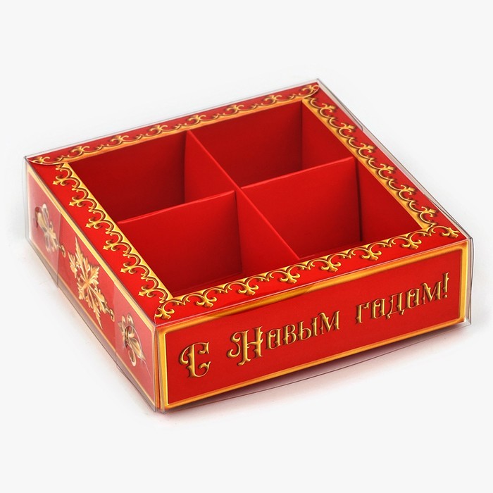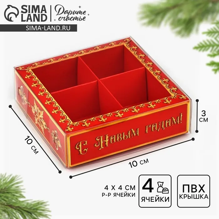 Коробка под 4 конфеты с ячейками «С Новым годом!», 10 х 10 х 3 см — Характеристики