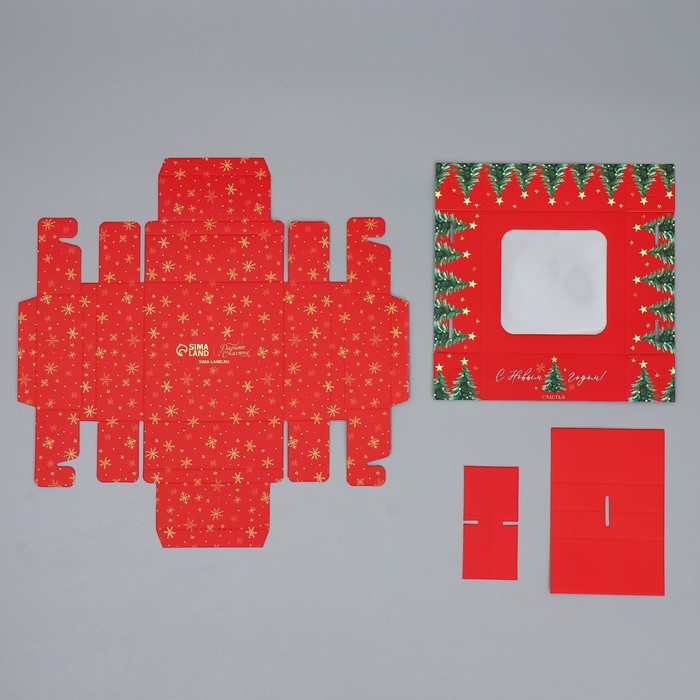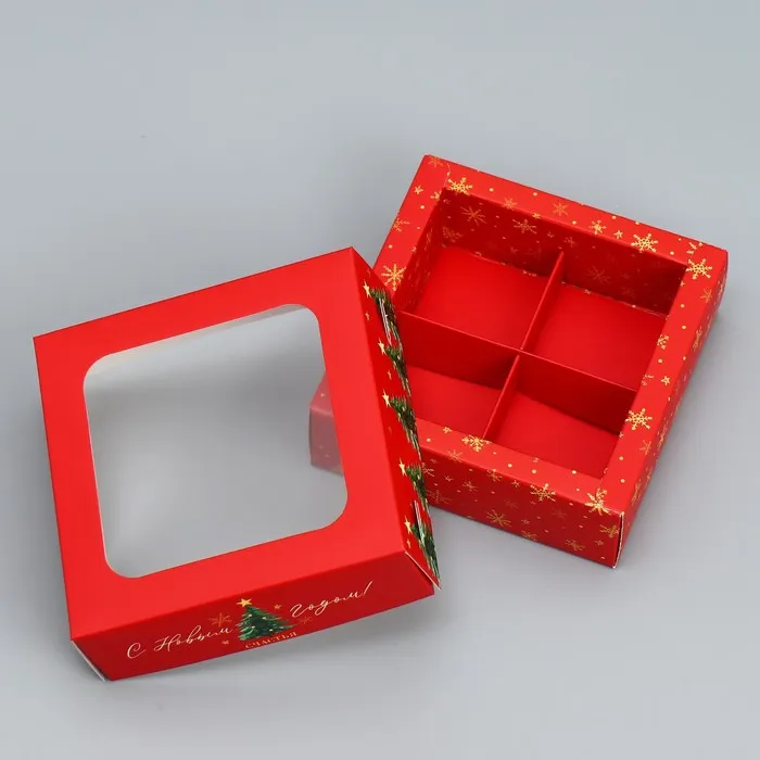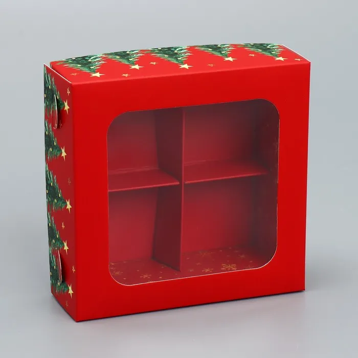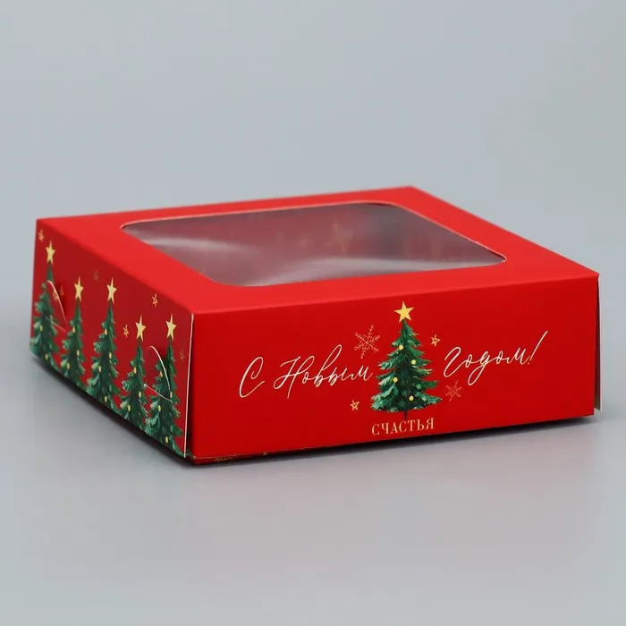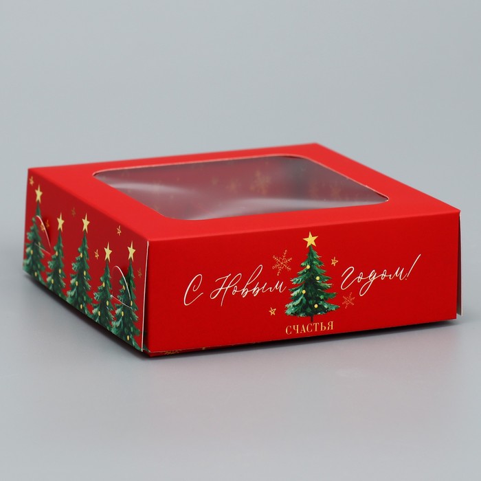 Коробка под 4 конфеты «С Новым годом!», ёлочки, 10.5 х 10.5 х 3.5 см — Характеристики