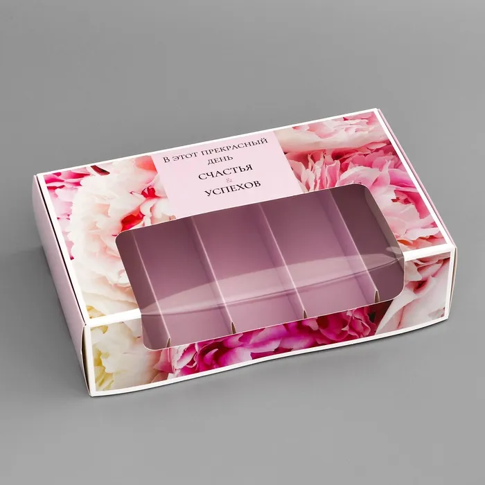 Коробка оформлена в пастельных тонах с нежным цветочным узором, отражающим весеннюю свежесть и романтическое настроение. Ее легко открыть и приятно держать в руках, что делает каждое распаковку настоящим событием.