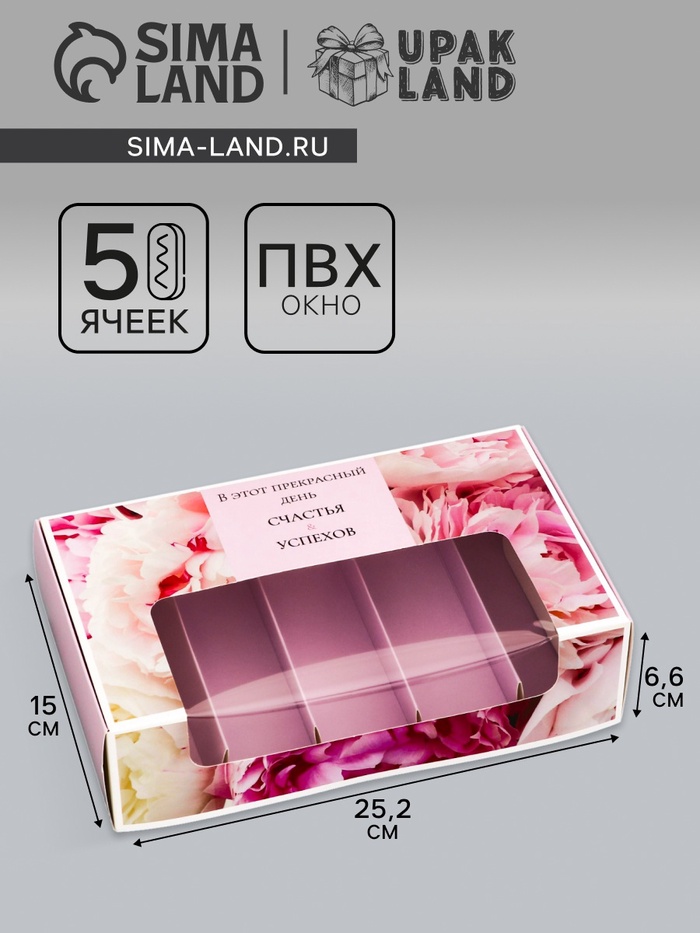 Коробка под 5 эклеров, кондитерская упаковка «Комплимент», 25.2×15×6.6 см — Характеристики