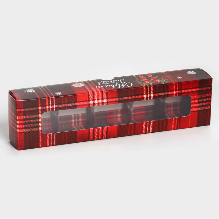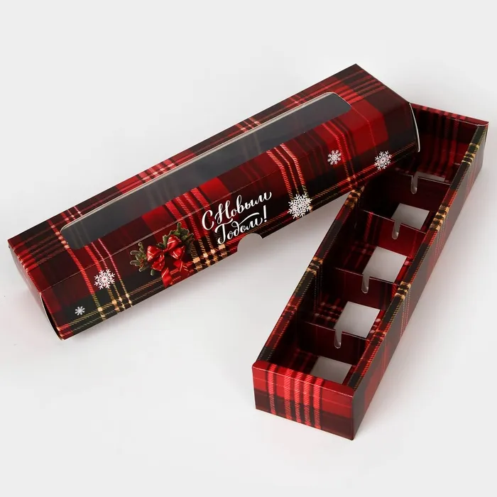Коробка под 5 конфет "Новогодняя" размером 21х5х3,3 см - это прекрасный выбор для упаковки сладостей к празднику. Она выполнена в ярких новогодних цветах, что создает атмосферу праздника и волшебства.