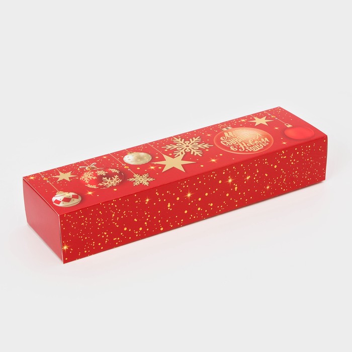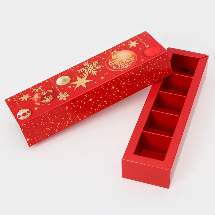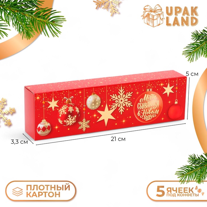 Новогодняя коробка для 5 конфет с обечайкой, размером 21 х 5 х 3,3 см — элегантная и стильная упаковка для сладких подарков.
