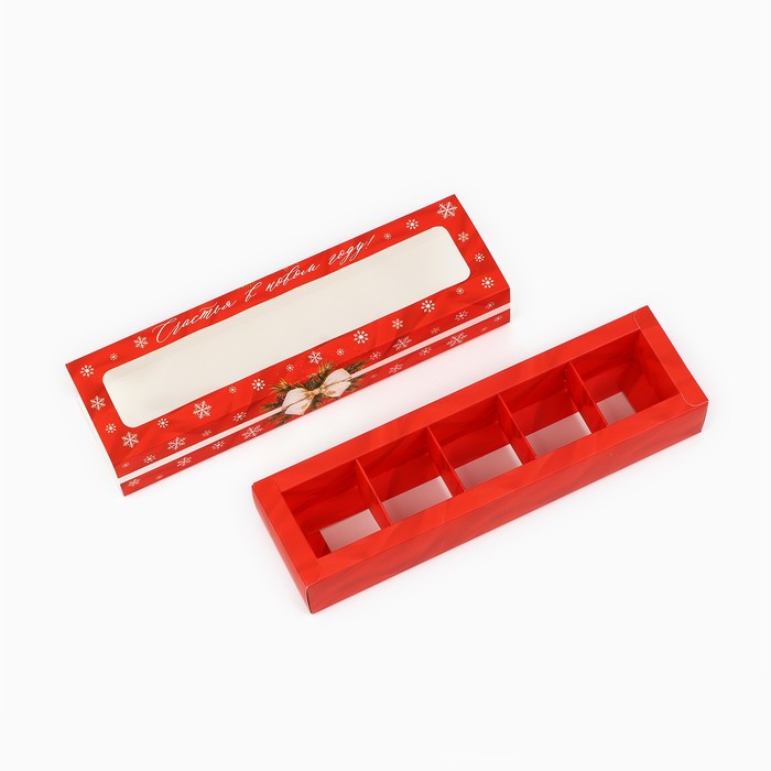 Коробка под 5 конфет новогодняя с ячейками «Счастья и радости» 21 х 3 х 5.5 см — Характеристики