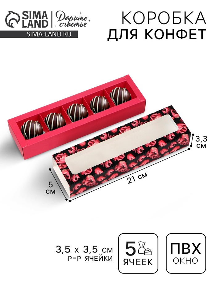 Коробка под 5 конфет с ячейками «Фуксия», 21 х 3.3 х 5.8 см — Характеристики