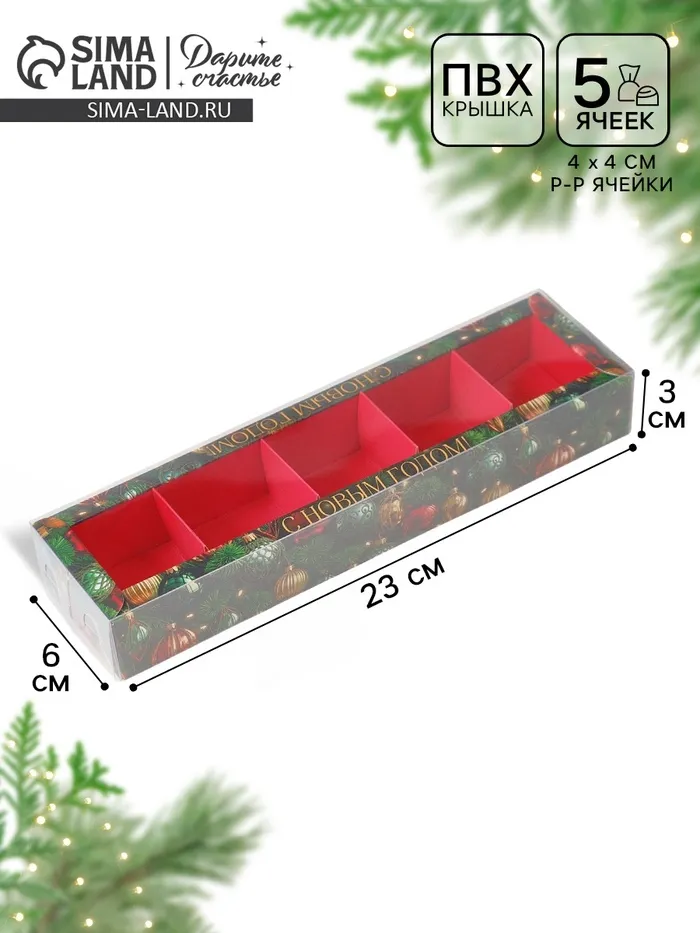 Коробка под 5 конфет с ячейками «Новый год», 6 х 23 х 3 см — Характеристики