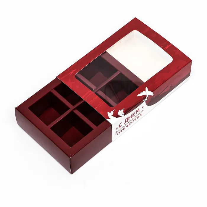 Коробка под 6 конфет, «С Днём Защитника Отечества», 13.7×9.85×3.86 см — Характеристики