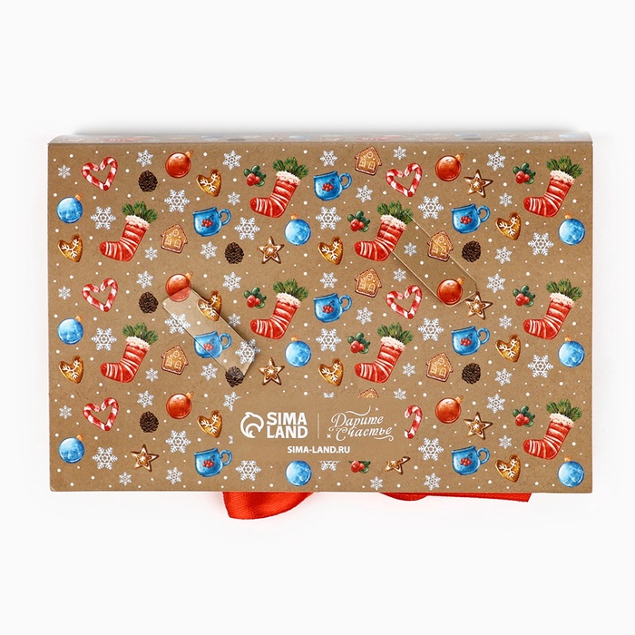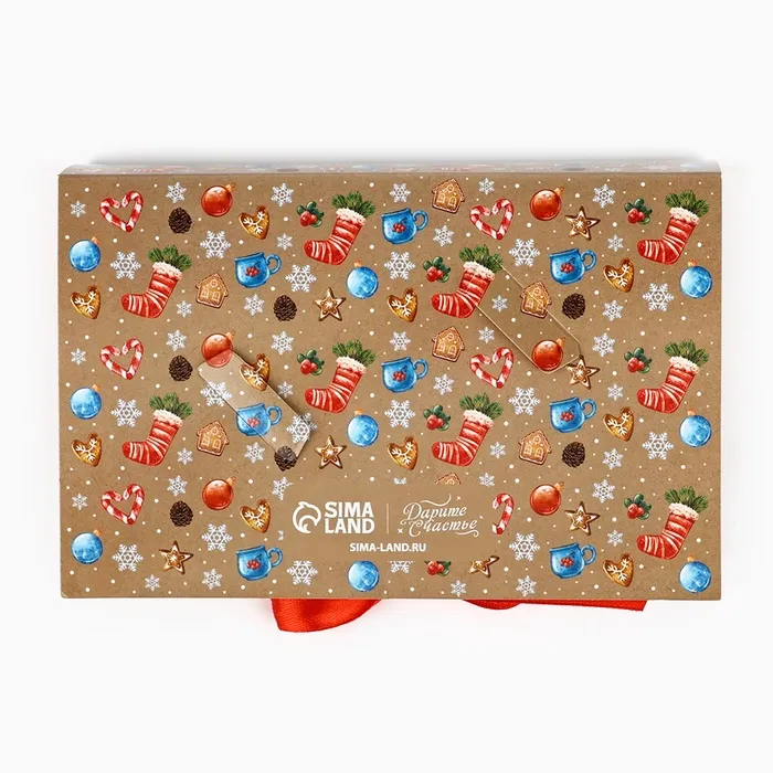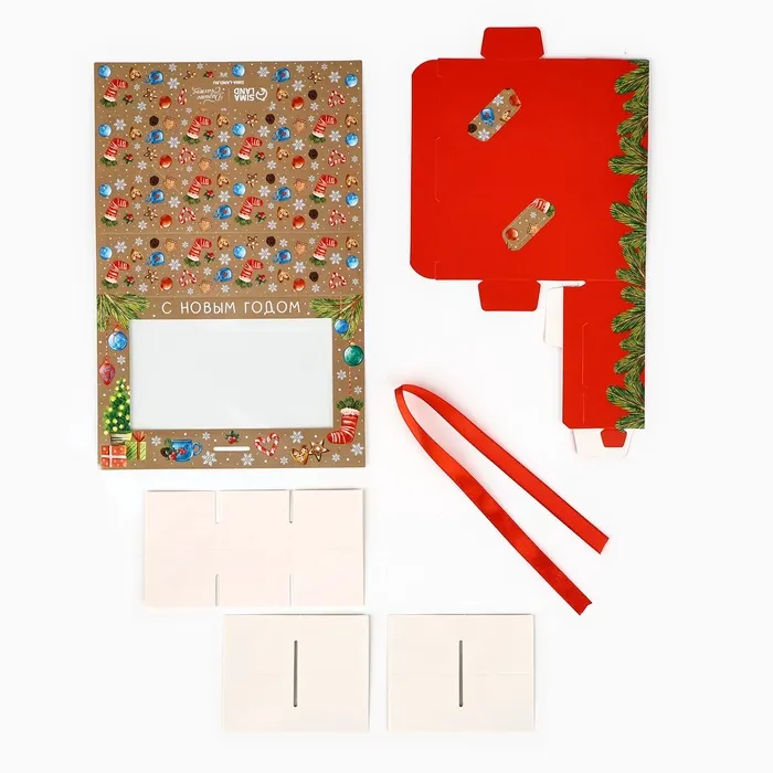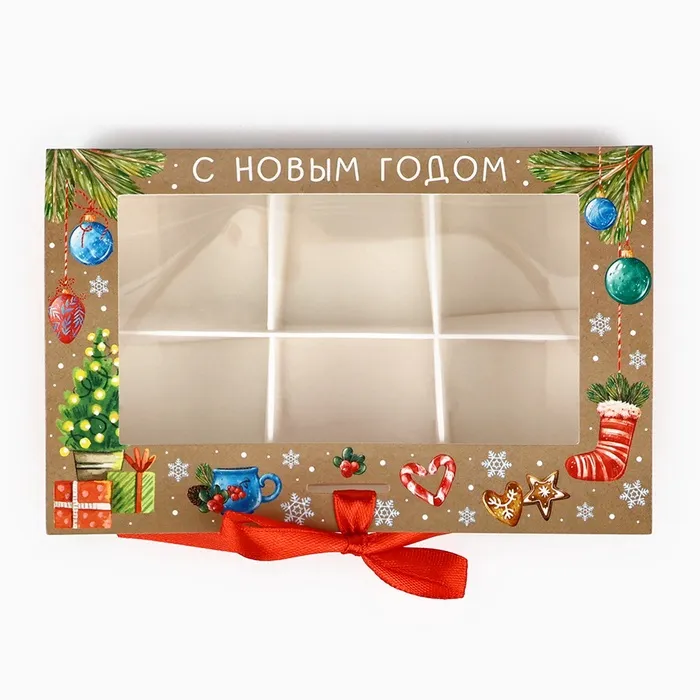 Коробка под 6 конфет с ячейками «Новогодние атрибуты» 14.5 х 9.5 х 3.5 см — Характеристики
