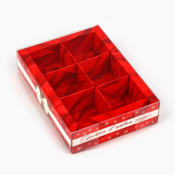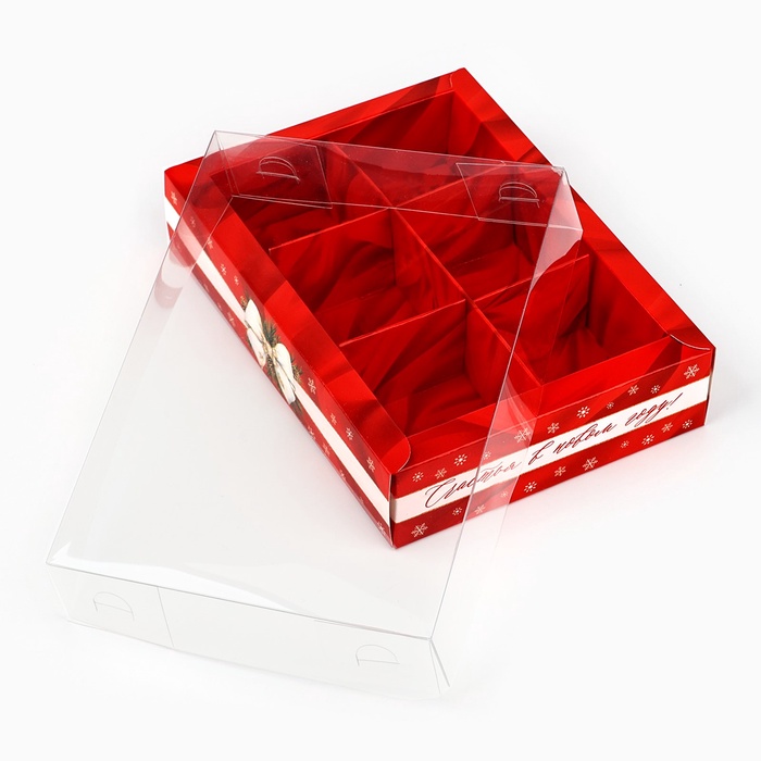 Коробка под 6 конфет с ячейками «Новогодний бант», 10 х 14.5 х 3 см — Характеристики