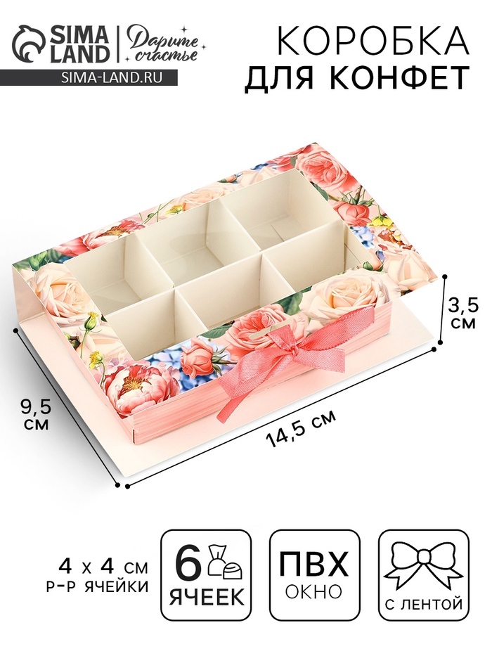 Коробка под 6 конфет с ячейками «Подарок» 14.8 х 9.5 х 3.5 см — Характеристики