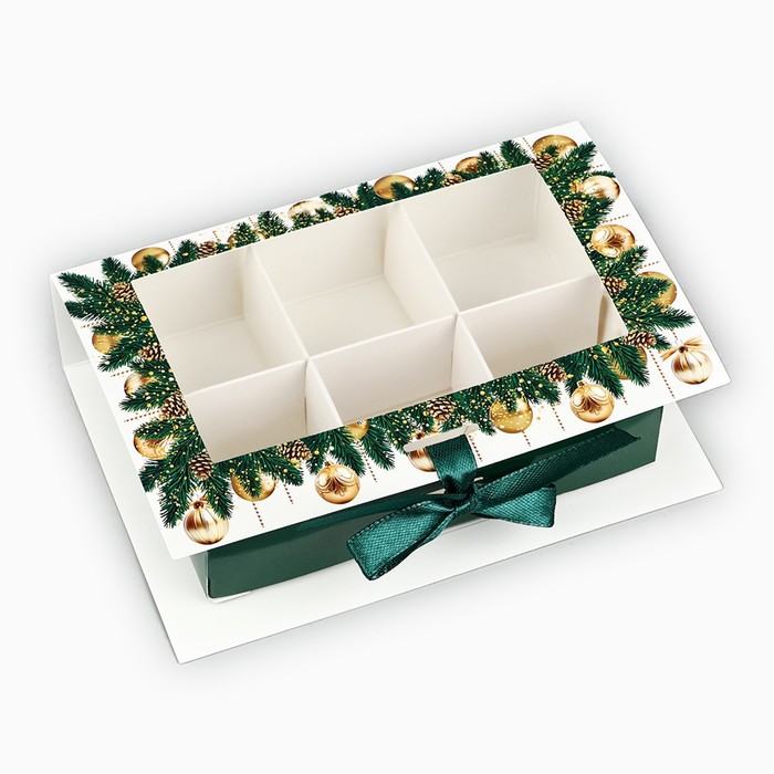 Коробка под 6 конфет с ячейками «Счастливого Нового года!» 14.5 х 9.5 х 3.5 см