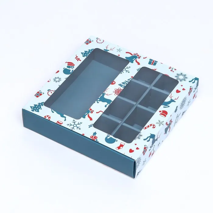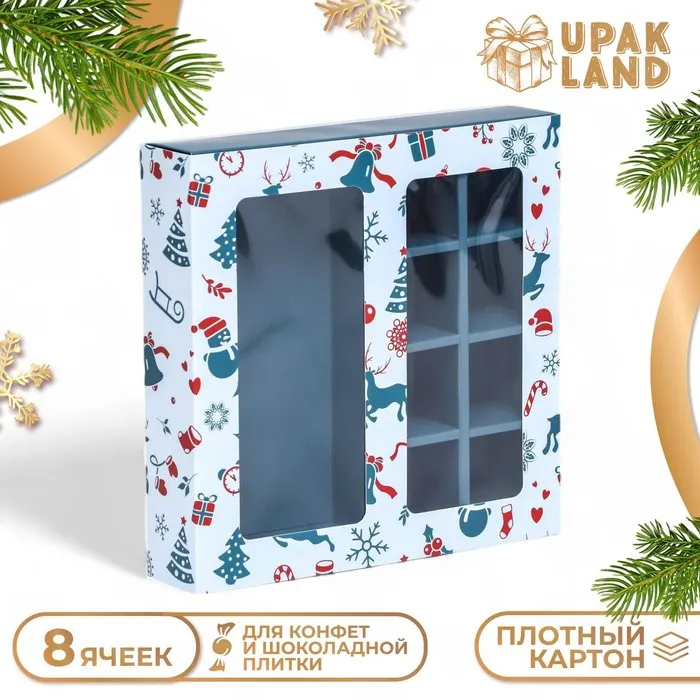 Коробка для конфет с местом для 8 конфет и шоколадки - идеальный выбор для создания небольшого сладкого подарка или угощения. Этот стильный контейнер объединяет разнообразие вкусов, предоставляя вам возможность наслаждаться как изысканными конфетами, так и ароматным шоколадом. Это идеальное угощение для себя или подарок для близких.