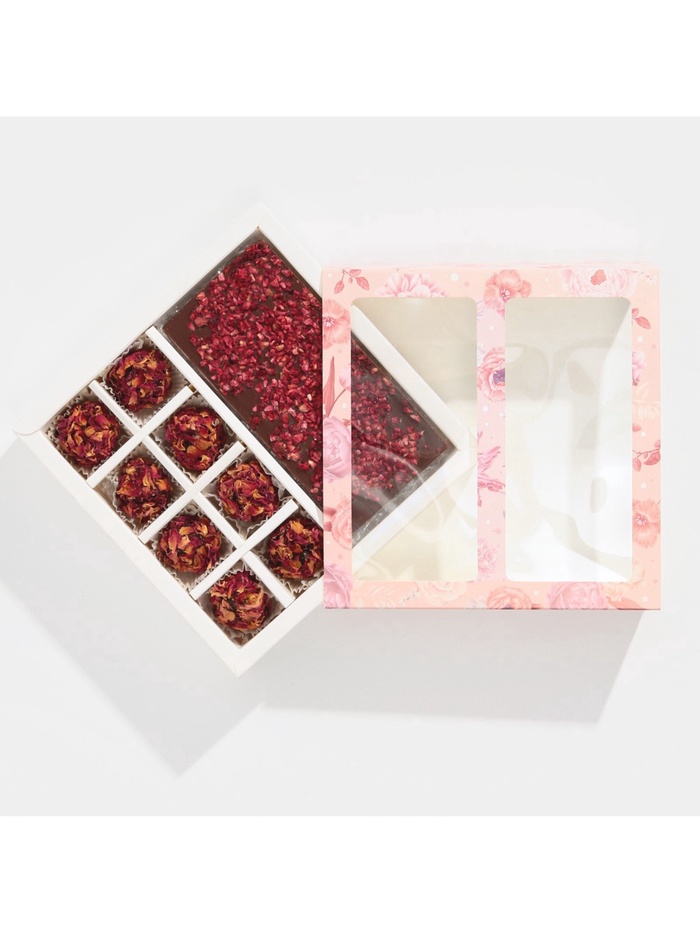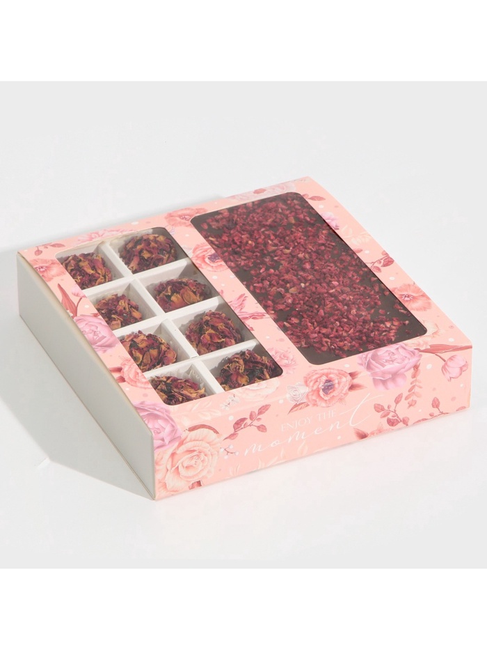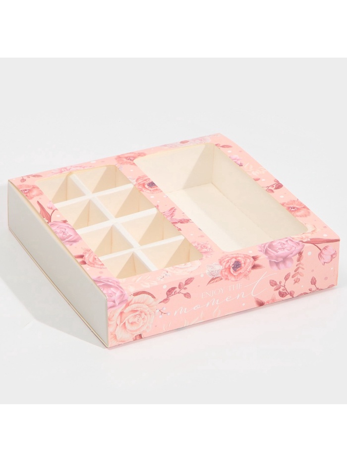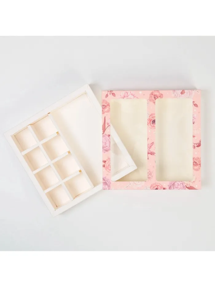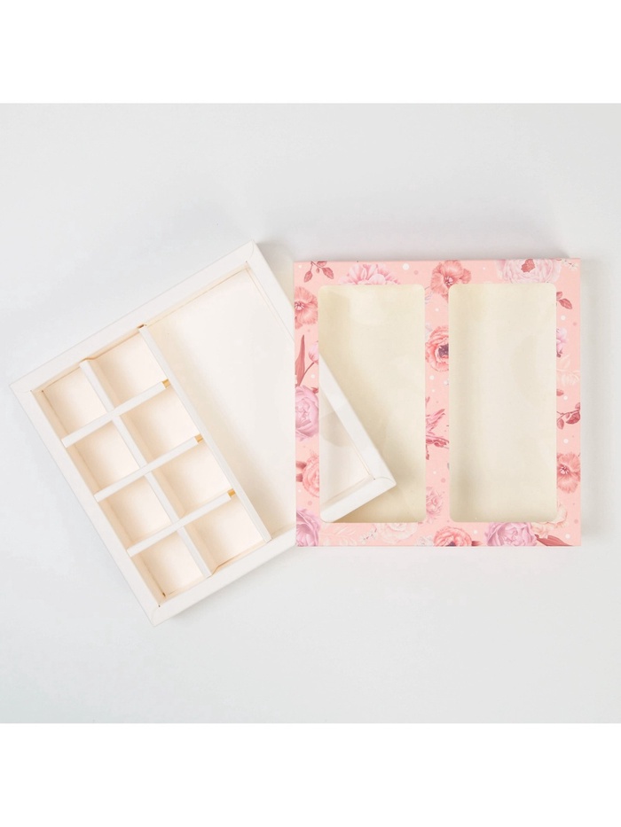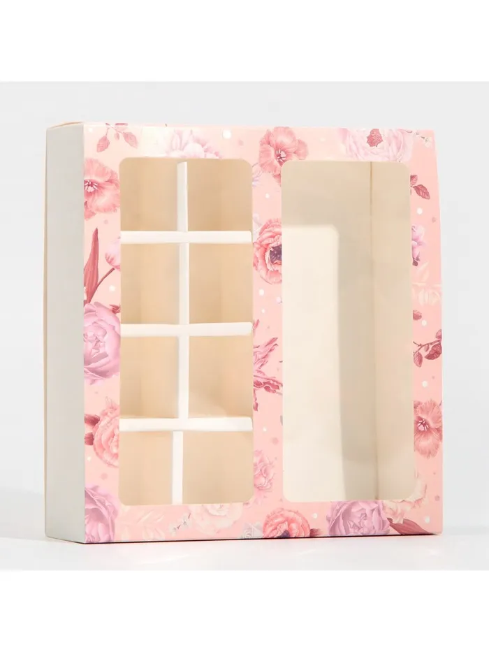 Коробка под 8 конфет и шоколад с ячейками, кондитерская упаковка, «Розовые цветы» 18 х 18 х 4 см — Характеристики