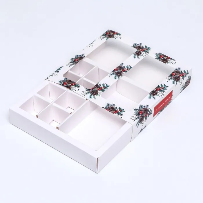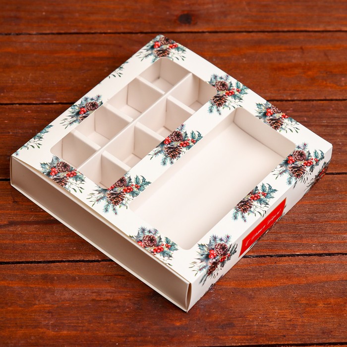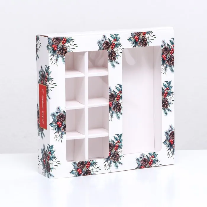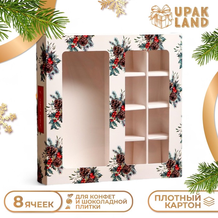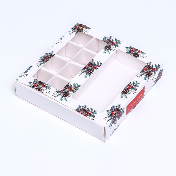 Коробка под 8 конфет и шоколад «С Новым годом!», 17.5×17.5×3.5 см — Характеристики