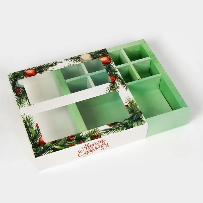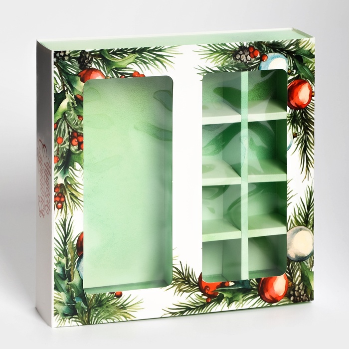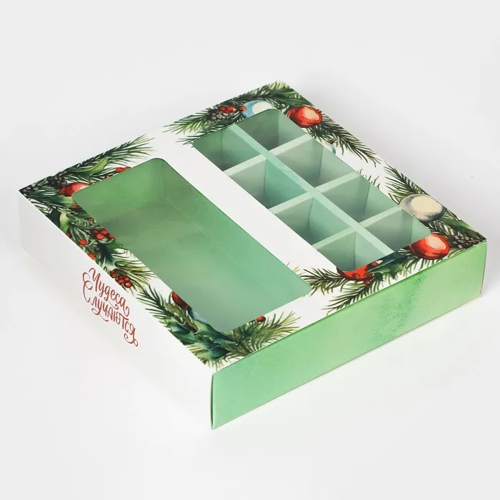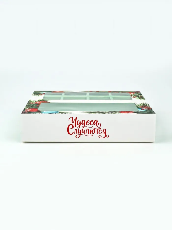 Коробка под 8 конфет и шоколад, с окном "Чудеса случаются", 17,7 х 17,8 х 3,8 см, кондитерская упаковка