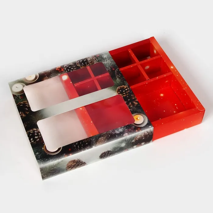 Коробка под 8 конфет и шоколад, с окном «Новогодняя», 17.7×17.8×3.8 см — Характеристики