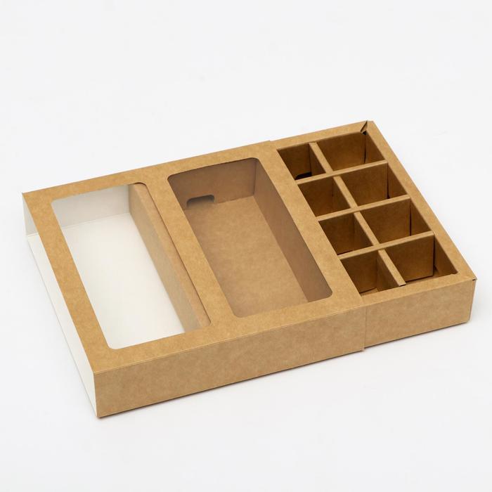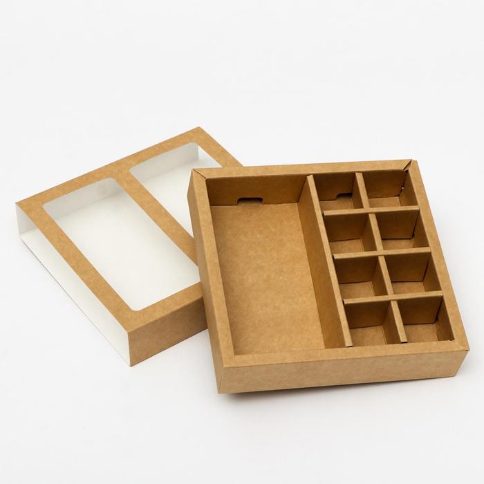 Коробка под 8 конфет + шоколад, с окном, крафт, 17×5×17.5×3.7 см — Характеристики