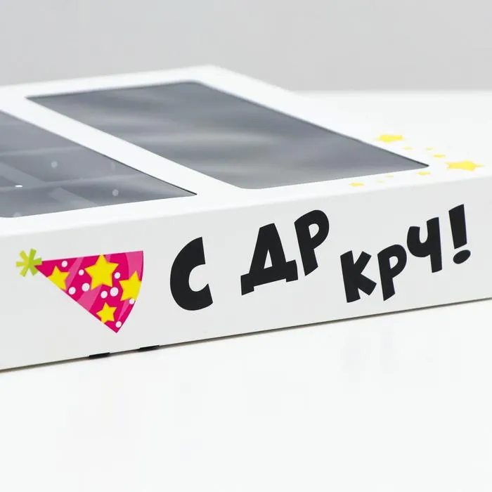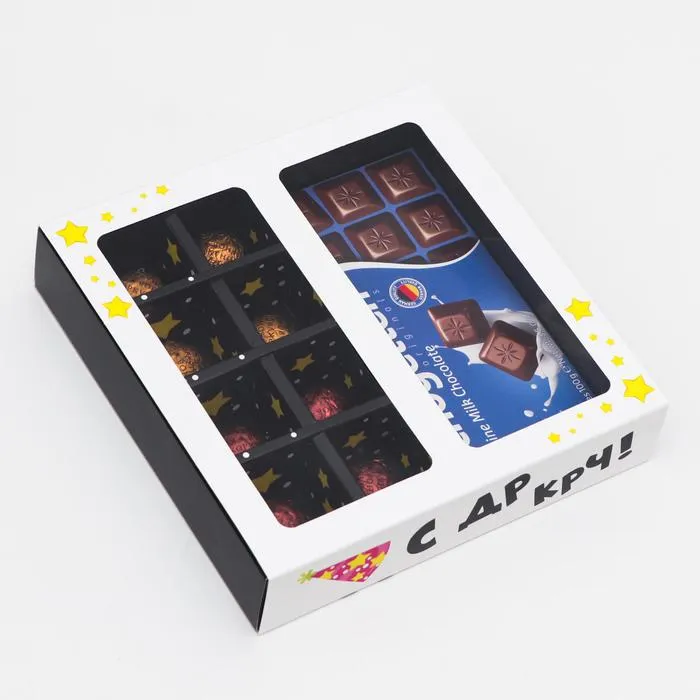 Коробка под 8 конфет + шоколад, с окном , "С ДР КРЧ", 17,7 х 17,85 х 3,85 см — Характеристики