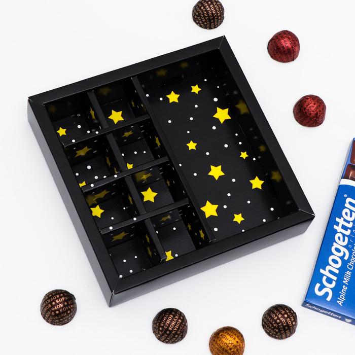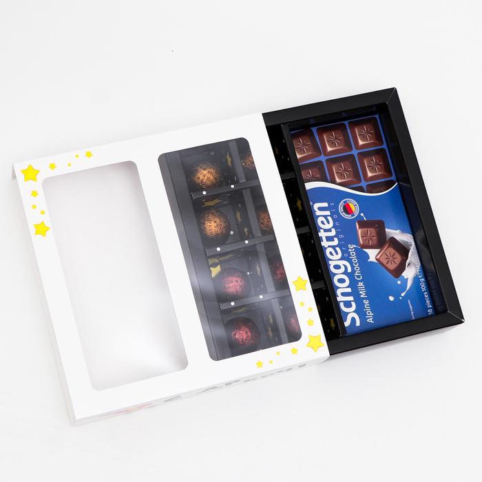Коробка из прочного картона, созданная для красивой упаковки ваших сладостей. Вмещает 8 конфет и шоколад. Комбинация прочности материала и стильного дизайна делает эту упаковку идеальным подарком для ценителей сладостей. Ее особенностью является стильное окно, которое не только придает изысканность упаковке, но и позволяет наслаждаться видом сладких угощений.