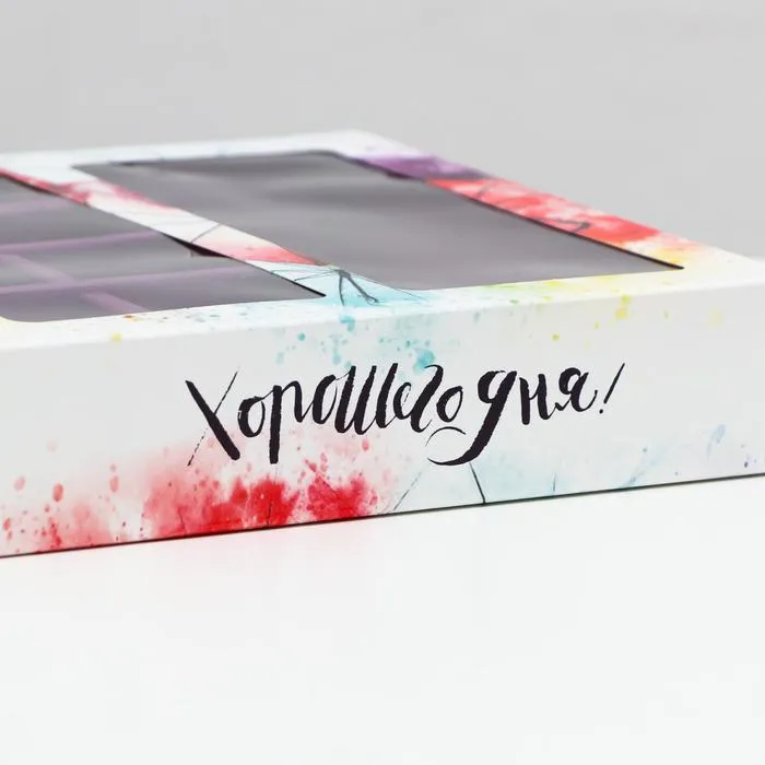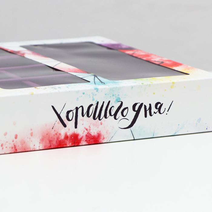 Коробка под 8 конфет + шоколад, с окном, зонтики, 17.7×17.85×3.85 см — Характеристики