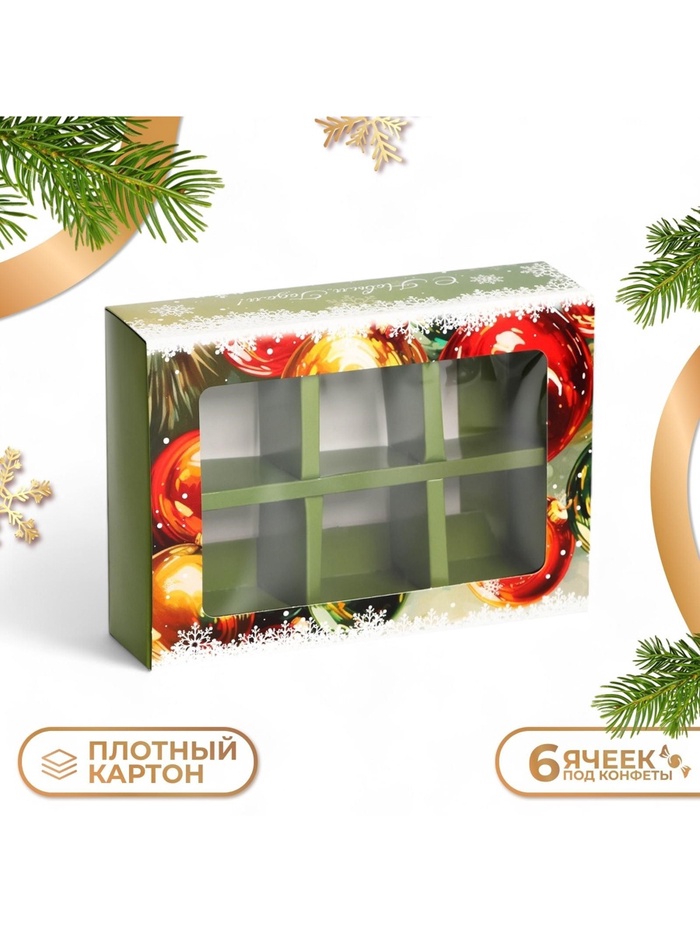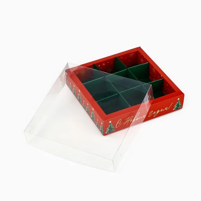 Коробка под 9 конфет новогодняя с ячейками «Ёлочки», 14.5 х 14.5 х 3 см — Характеристики