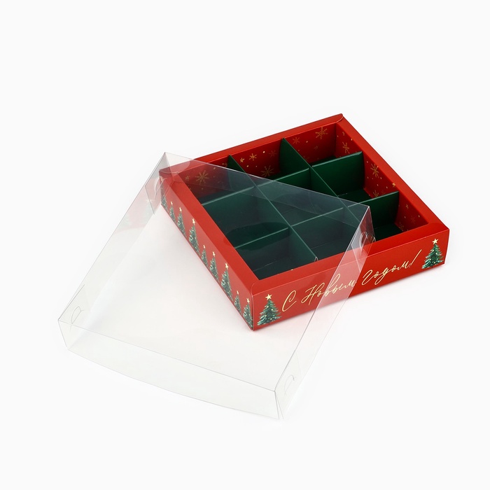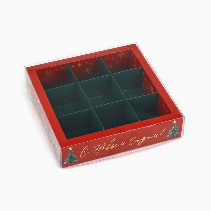 Коробка под 9 конфет новогодняя с ячейками «Ёлочки», 14.5 х 14.5 х 3 см