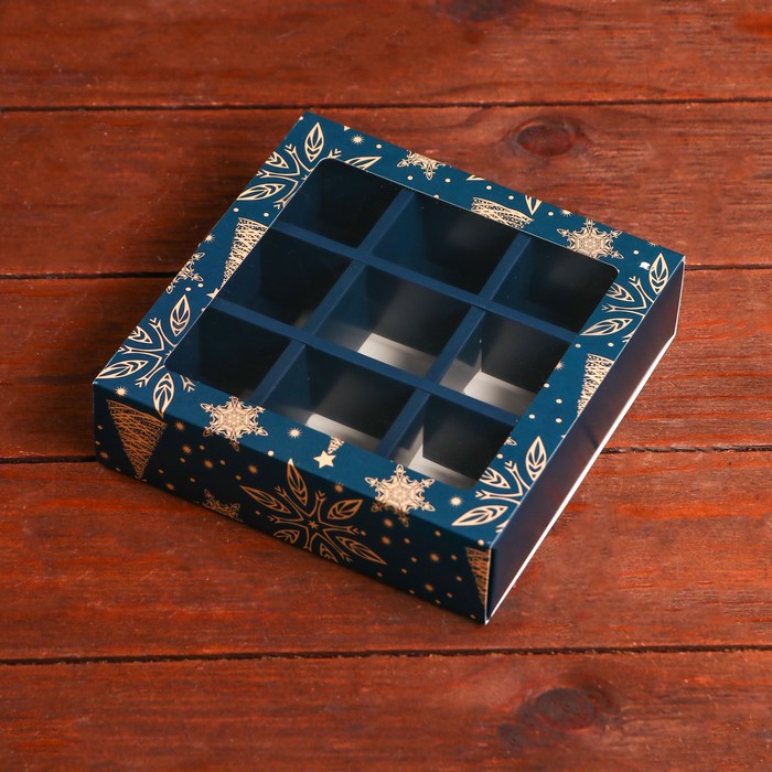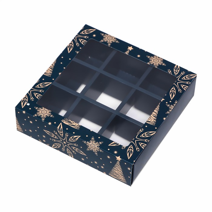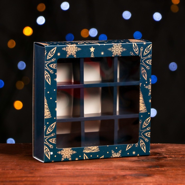 Коробка под 9 конфет «Праздничное волшебство», 13.7×13.7×3.5 см — Характеристики