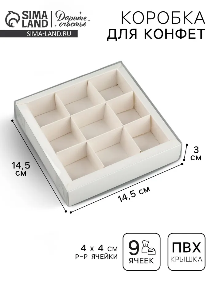 Коробка под 9 конфет с ячейками «Белая», 14.5 х 14.5 х 3 см — Характеристики