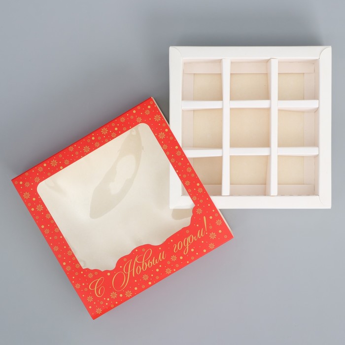 Коробка под 9 конфет с ячейками «Красивый новый год» 14.5 х 14.5 х 3.5 см — Характеристики