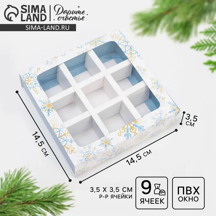 Коробка под 9 конфет с ячейками «Новогодняя» 14,5 х 14,5 х 3,5 см — Характеристики