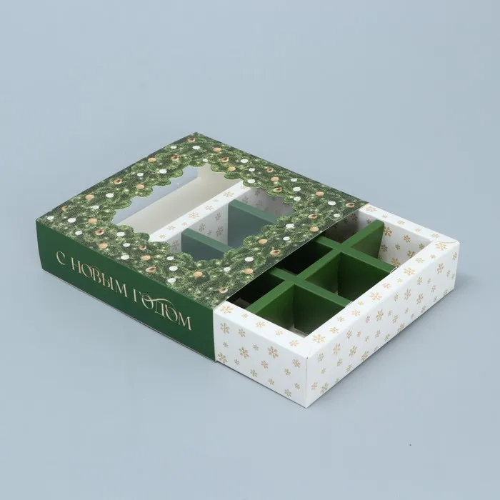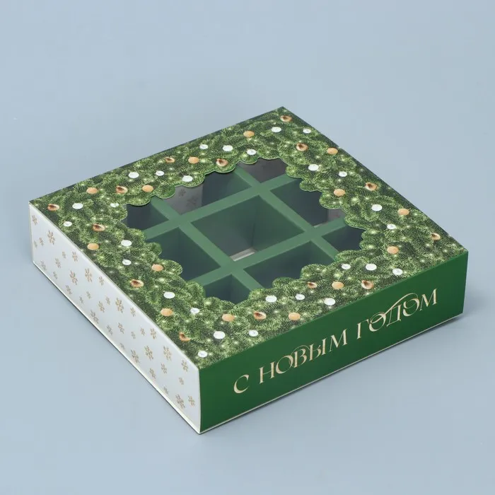 Коробка под 9 конфет с ячейками «С Новым годом» 14.5 х 14.5 х 3.5 см — Характеристики