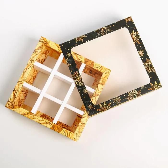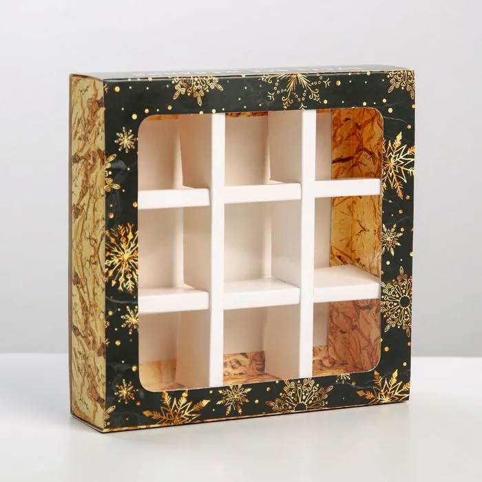 Коробка под 9 конфет с ячейками «Снежинка» 14,5 х 14,5 х 3,5 см — Характеристики