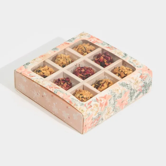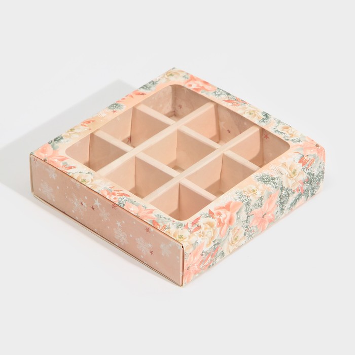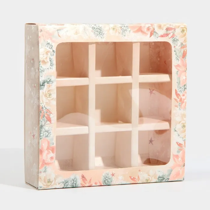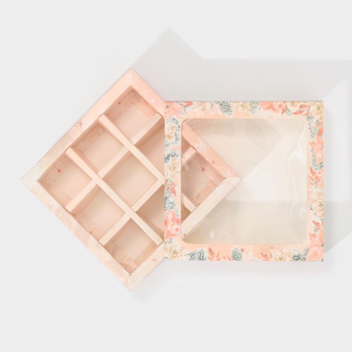 Коробка под 9 конфет с ячейками «Стильный розовый» 14,5 х 14,5 х 3,5 см — Характеристики