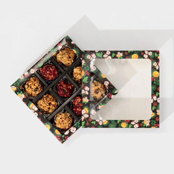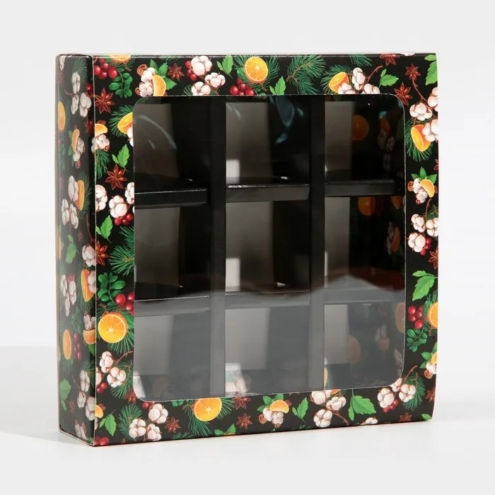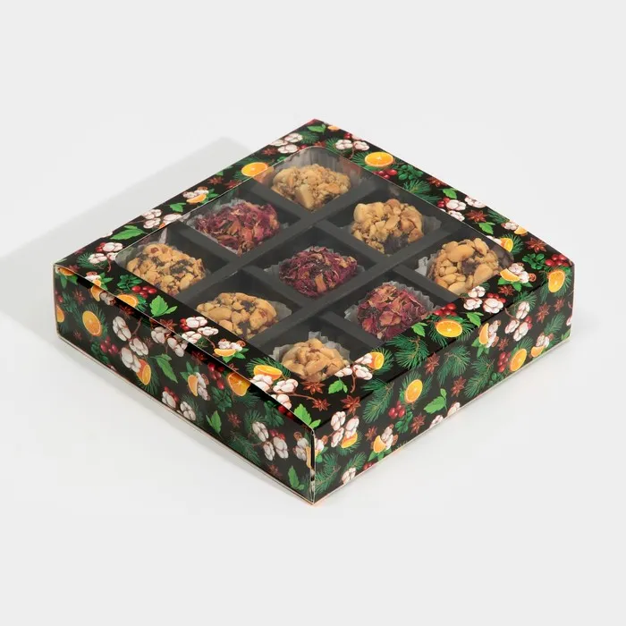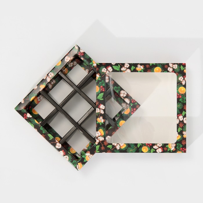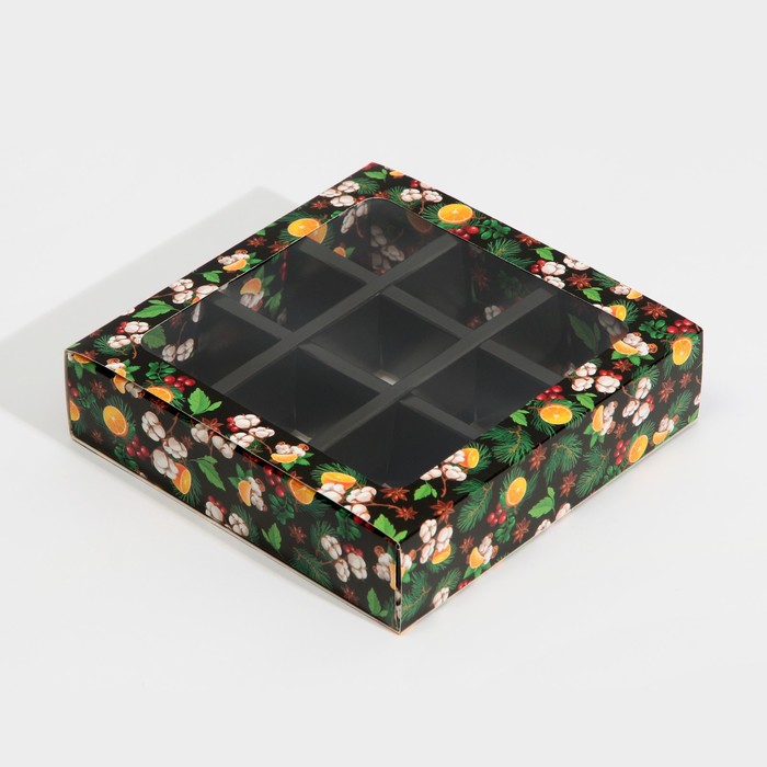 Коробка под 9 конфет с ячейками «Вкусный новый год» 14,5 х 14,5 х 3,5 см — Характеристики