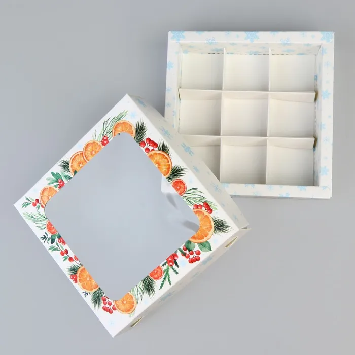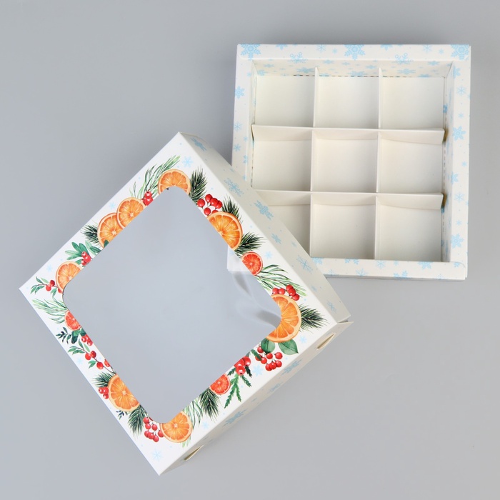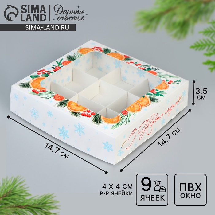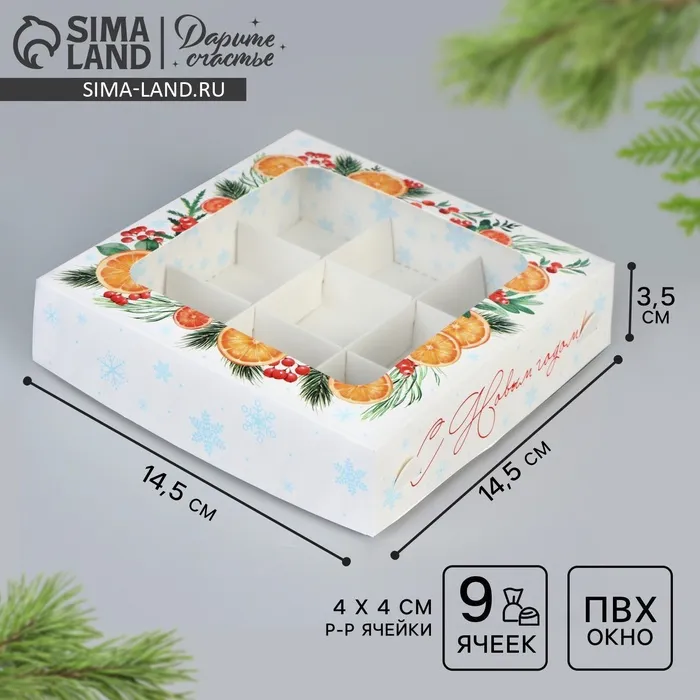 Коробка под 9 конфет «С Новым годом», ботаника, 14.5 х 14.5 х 3.5 см — Характеристики