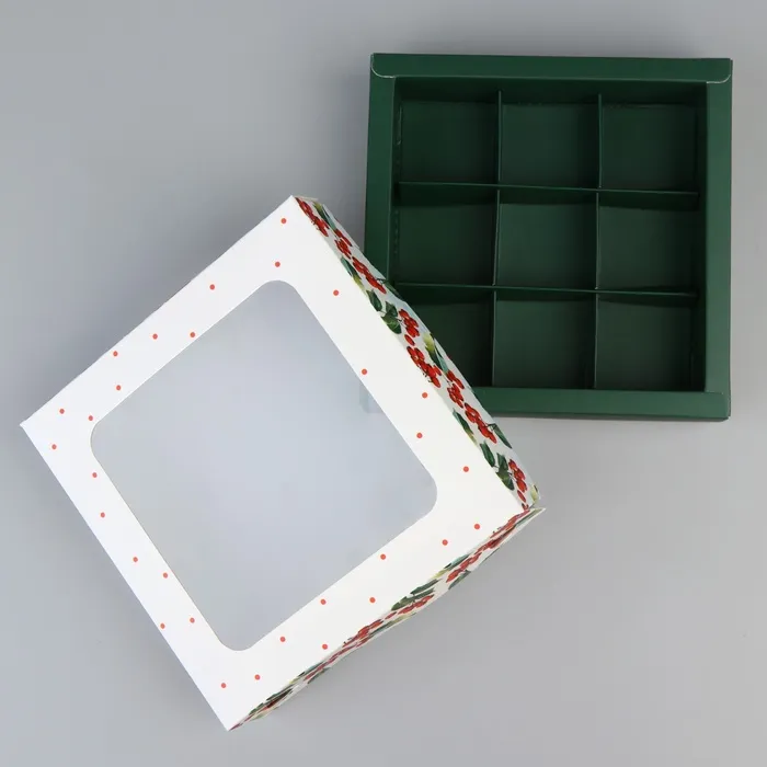 Коробка под 9 конфет «С Новым годом», снегири, 14.5 х 14.5 х 3.5 см — Характеристики