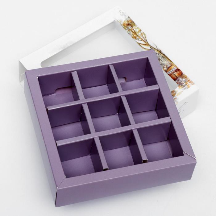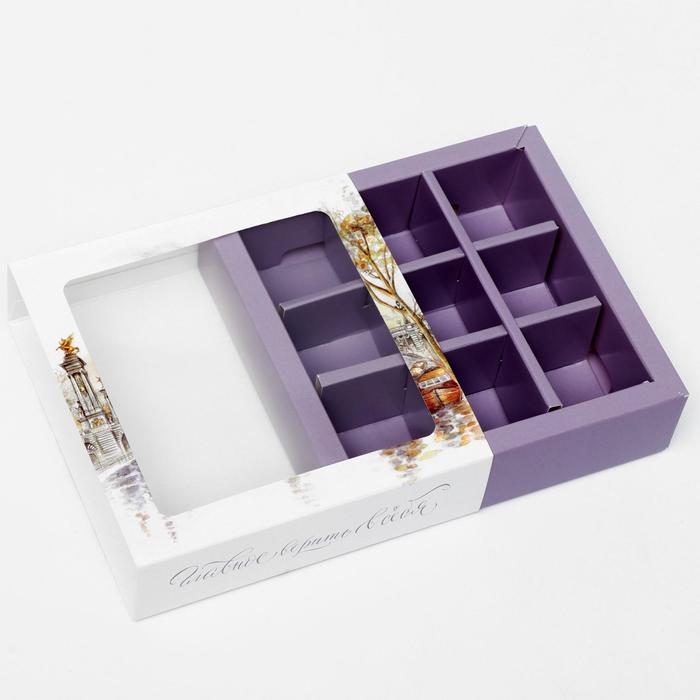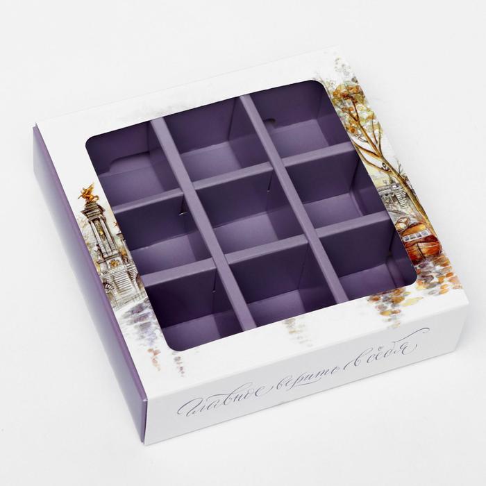 Коробка под 9 конфет с обечайкой « Главное верить в себя » с окном 14.5×14.5×3.5 см — Характеристики