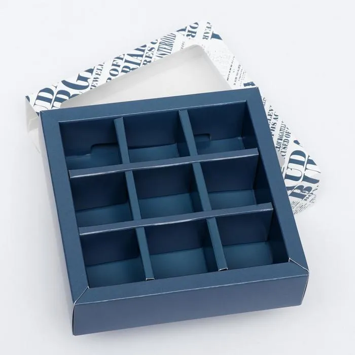 Коробка под 9 конфет с обечайкой « Пресса » с окном 14.5×14.5×3.5 см — Характеристики